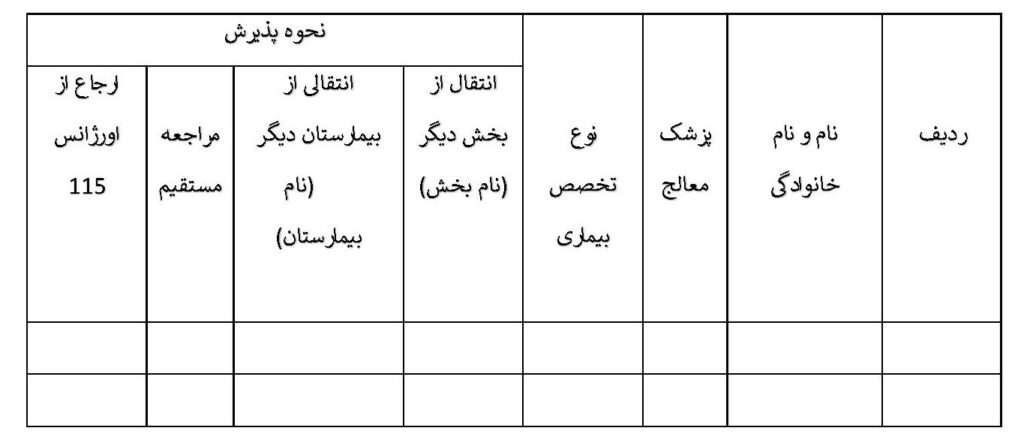 پذیرش بیمار از اورژانس به بخش های بالینی در ستون پذیرش مستقیم ثبت گردد .