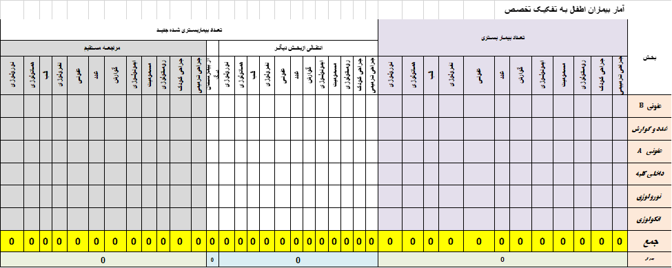 فرم تجمیع بیماران فوق تخصص به تفکیک بخش و نوع تخصص